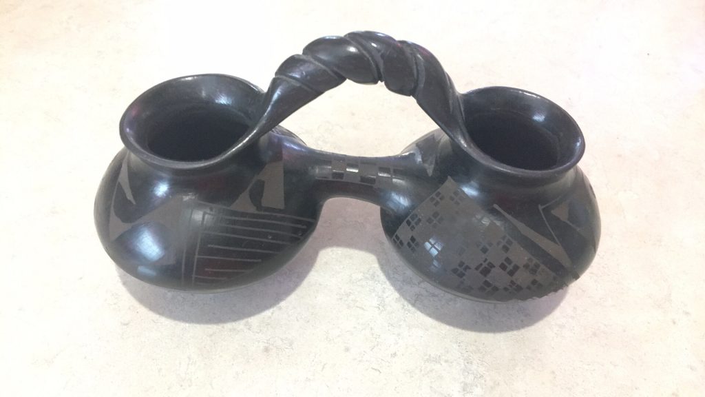 There are several styles of pottery produced in Mata Ortiz, including use of ivory white, reddish, and black colors. I personally find the black on black style of pottery to be the most distinctive and beautiful.